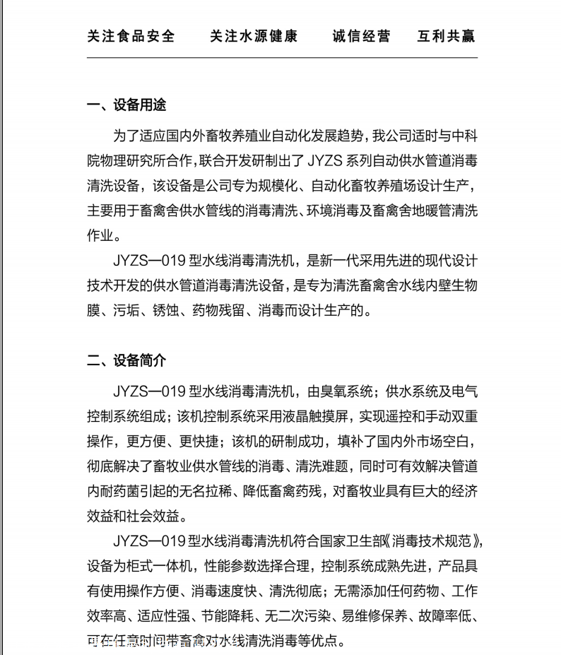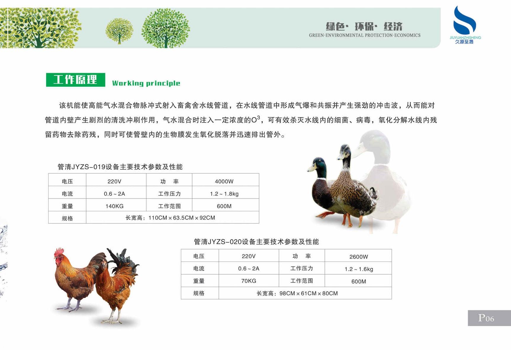 管清-@JYZS系列自动水线消毒清洗机是我公司与中科院物理研究所协同开发的,是专门为大型和自动化畜牧场设计生产的,并配有臭氧系统(氧气源)氧)。站,臭氧发生器);供水系统(专用泵)和数控系统构成;设备性能参数选项合理,容易使用和操作,成本低,工作范围大,工作效率高,适应性强,节能降耗,无二次污染等特性。